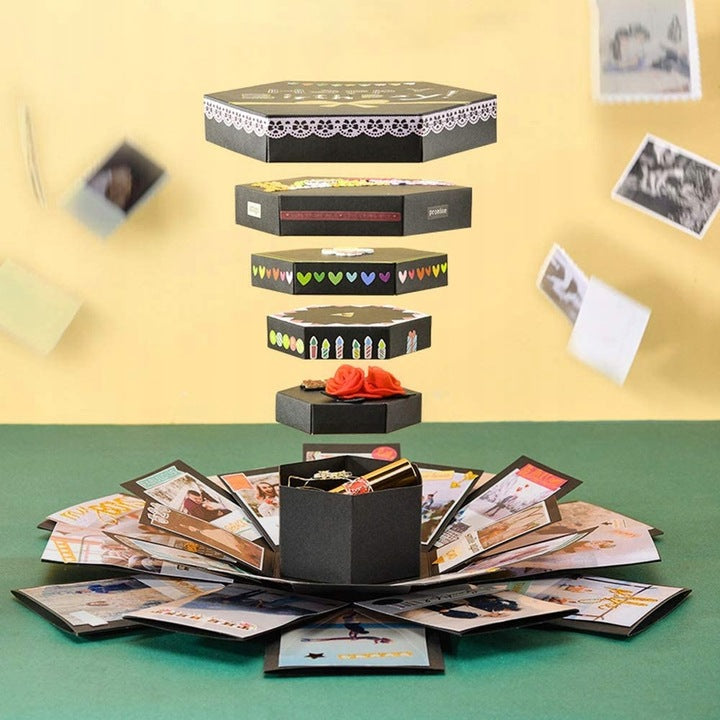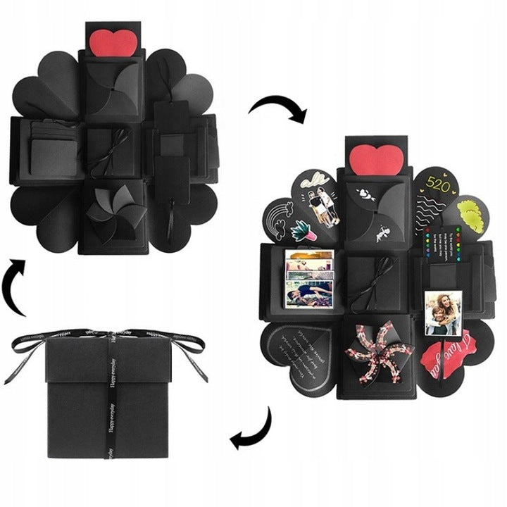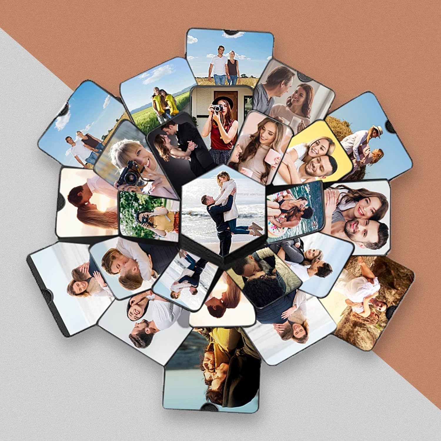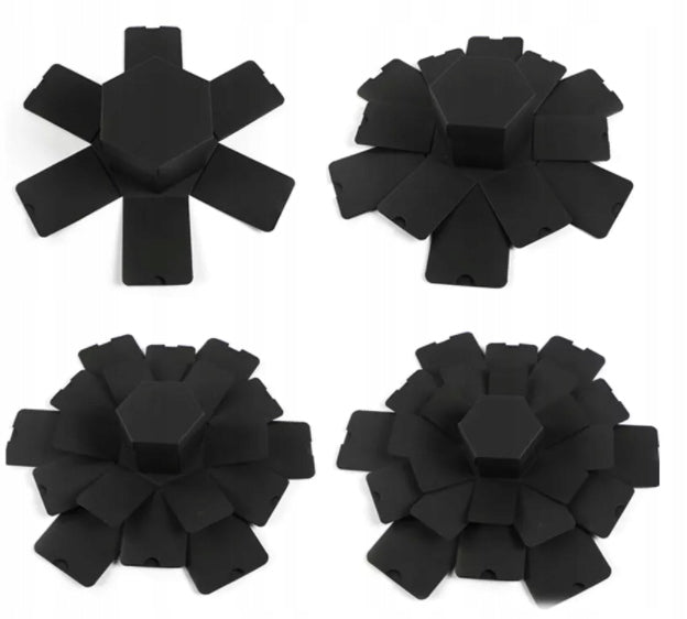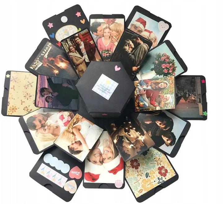To, co zaczyna się jako eleganckie, tajemnicze pudełko, po jednym ruchu zamienia się w kaskadę najcenniejszych wspomnień. Każda rozkładana ścianka to kolejny rozdział Waszej wspólnej opowieści, pełen zdjęć, uśmiechów i osobistych notatek. To nie jest prezent, który się ogląda – to prezent, który się odkrywa, tworząc namacalną mapę Waszej relacji.